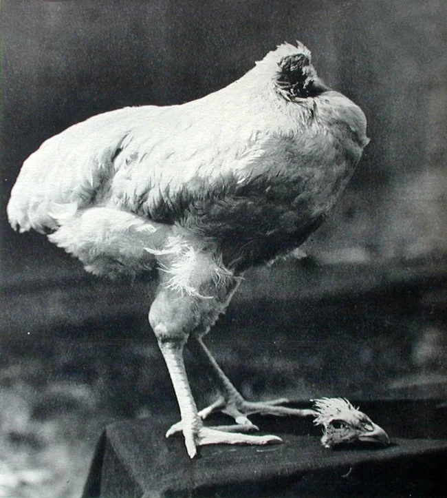 Miracle Mike, the headless chicken as he became known, toured the country for 18 months after that fateful night. People paid 25 cents to see the headless wonder. He was fed a mixture of milk and water with an eyedropper, and small kernels of corn were shoved down his throat.