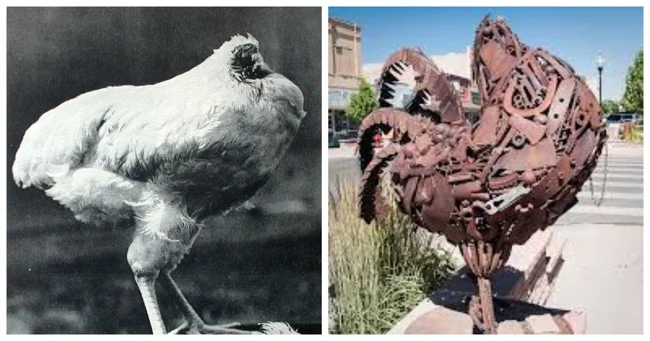 The sculpture "Mike the headless cockerel" is a dedication to a unique bird that has gone through a difficult journey (12 photos + 1 video)