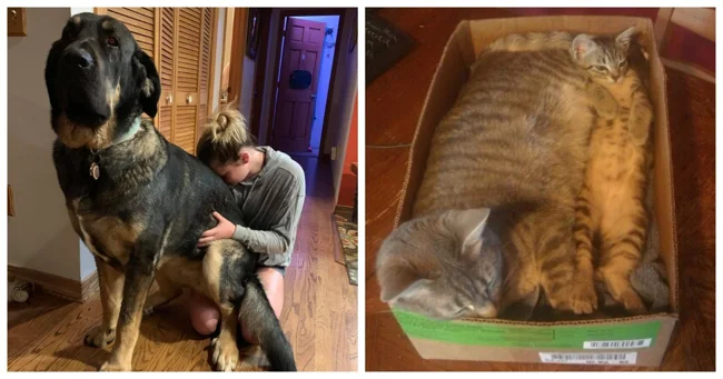 Sometimes it's hard to tell the size of an animal until you put it next to another. After all, a Labrador might not seem that big compared to a standard poodle, but when you compare it to a bottle of water, you can really appreciate its impressive size. And, it must be said, large dogs and cats only benefit from their size, looking incredibly cute.