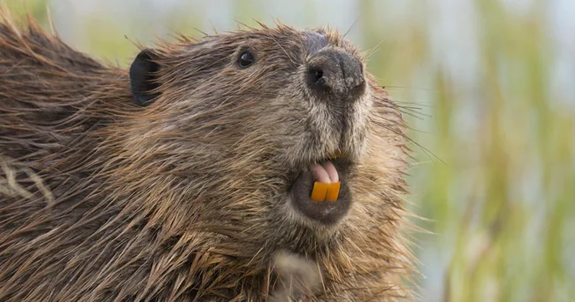 Beaver teeth never stop growing. To control their length, the animals have to constantly gnaw wood. The incisors of animals sharpen themselves. The back part made of dentin is softer and wears down faster, leaving a sharper outer part made of enamel. The growth rate is about 1 millimeter per day. And if you do not wear down the length, the teeth can begin to curl and lose their functionality.