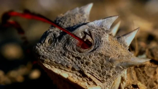 The toad-like or horned lizard (Phrynosoma) squirts blood from its eyes at a predator when all other methods of defense prove ineffective.