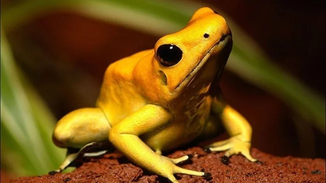 This cutie, which measures no more than 4 centimeters, secretes a poison called batrachotoxin. It is so strong that one golden poison dart frog contains enough of it to kill ten healthy adult men.