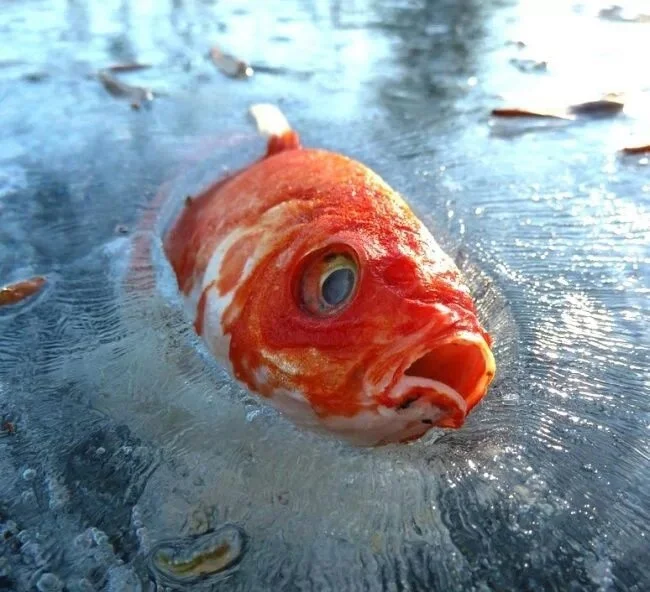 If you don't understand what's going on here: in the photo, a pike caught a perch and somehow froze into an ice cube. That's what happens when you forget to put antifreeze in your blood!