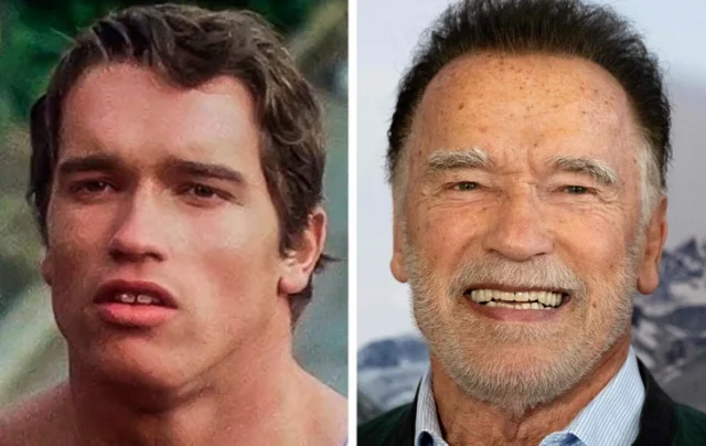 Arnold Schwarzenegger in "Hercules in New York" in 1970 and in 2024