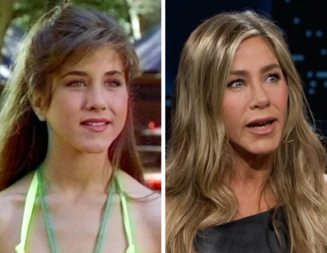 Jennifer Aniston in "Camp Cucamonga" in 1990 and in 2024
