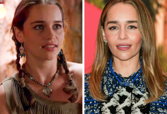 Emilia Clarke in the film "Triassic Attack" in 2010 and in 2023