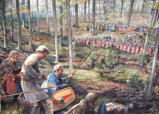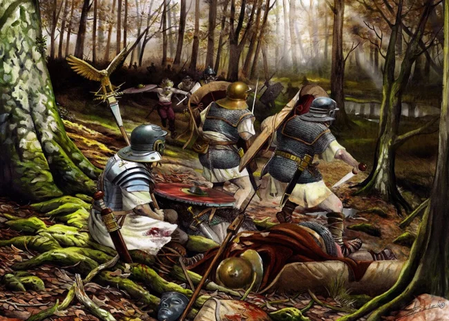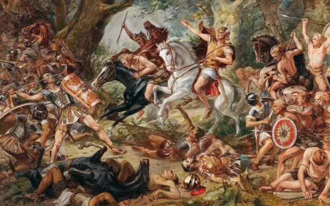 The barbarians occupied the heights and attacked from all sides. And the Romans got stuck in the swampy soil and could not fight back properly. Arminius fled before the battle began and joined his brothers. And then the massacre began.