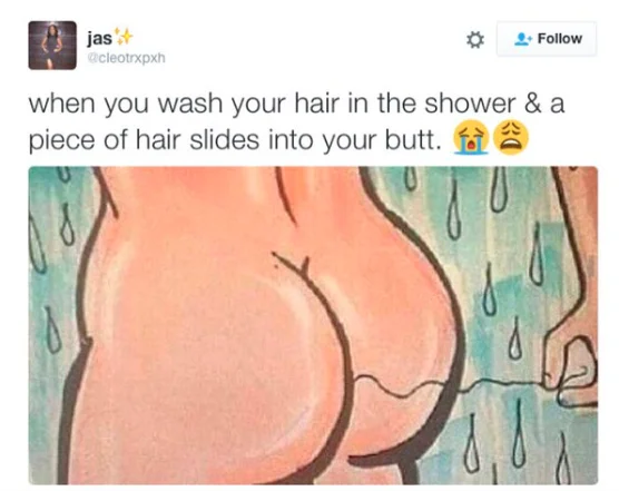 24. That awkward moment when you take a shower and find a hair in your butt that clearly doesn't belong there