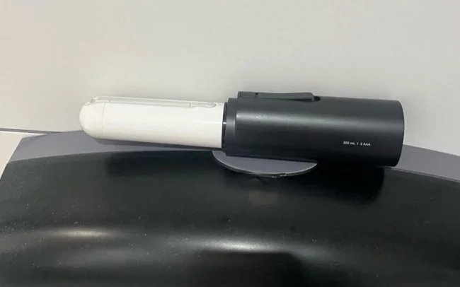 Portable travel bidet with electric mini spray. Charges via USB cable.