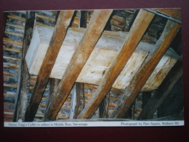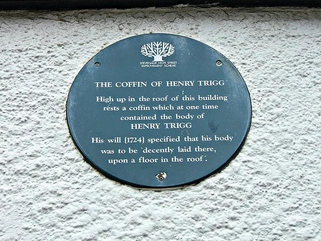Thomas had apparently carried out his brother's peculiar wish. Henry's body was placed in a lead-lined coffin, which was then raised into the rafters of his barn, about three metres above ground level. The unusual 'burial' soon attracted curious onlookers and became a popular sight in Stevenage. When the house was converted into the Old Castle Inn in 1774, the coffin continued to attract visitors, even after Trigg's niece, Anne, later requested that her uncle's remains be moved to the churchyard. However, the new owners of the inn chose to ignore Anne's wishes, leaving Henry's bones in the barn rafters to continue to attract visitors and fuel local lore.