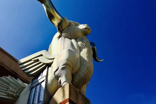 However, this Woofus is a recreation, not the original. When the original statue, created by sculptor Lawrence Tenney Stevens, was damaged in 1941, it was taken away and mysteriously disappeared. Some suspect that the local Christian community considered it too pagan and destroyed it. There is also a version that the sculpture was removed for repairs and then put in the wrong place.