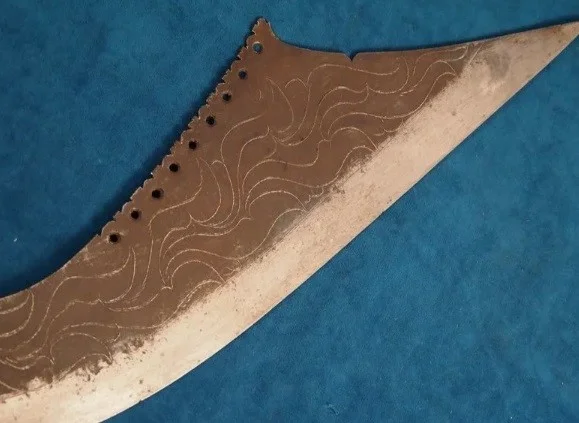 The second type of weapon has a blade that reaches its maximum width in the middle and then narrows, forming a point. In this case, the blade is already sharpened along the inner side of the bend.