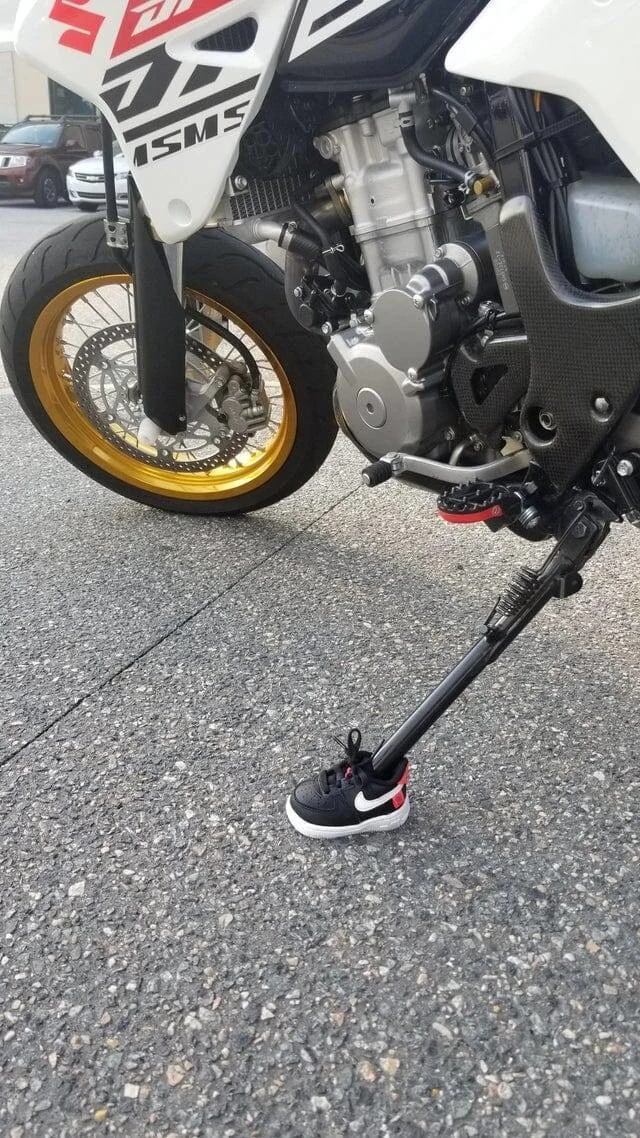 9. "I saw a motorcycle with a small sneaker on it "footboard"