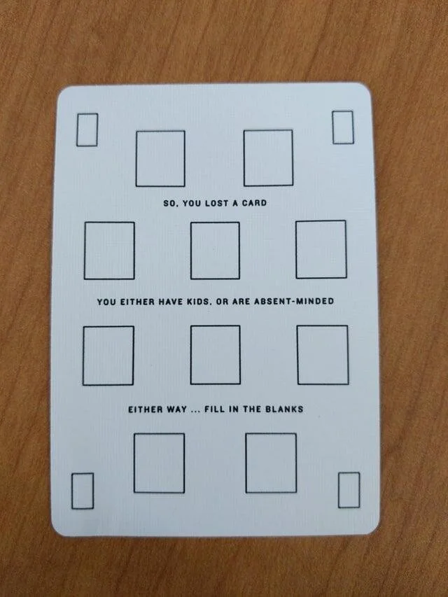 So, you lost the card. You either have children or you are absent-minded. Either way… fill in the squares.