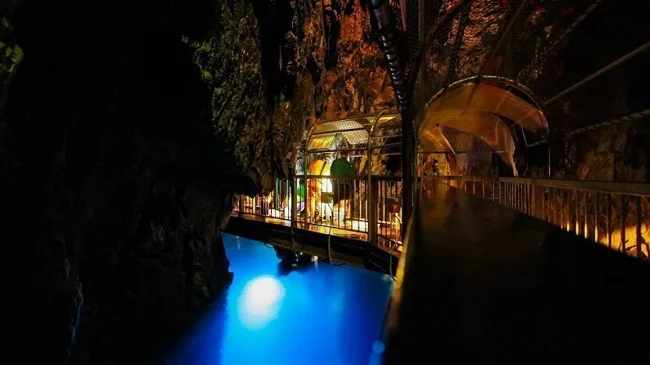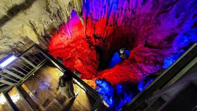 Paths, bridges and stairs lead visitors to a magical world where they can enjoy amazing underground beauties for half an hour. The bravest can climb to the vault and look at the water depths from the stalactites located above.