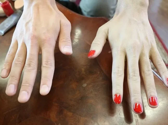 It is obvious that the man painted his nails - carelessly!