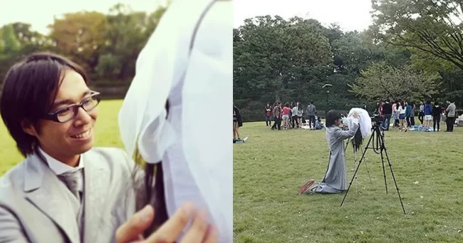 Keisuke collected all his tricks into one book, "Fictional Girl," and published it for all single men. There is a guide on how to take photos of a meeting, dates, engagement, and even family life with a fictional girl.