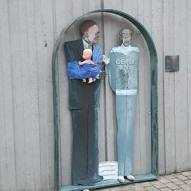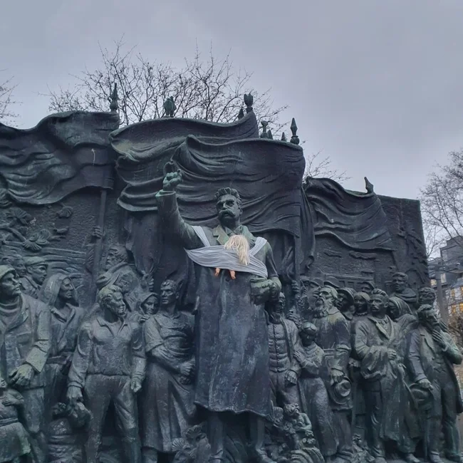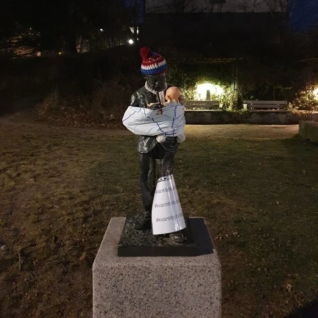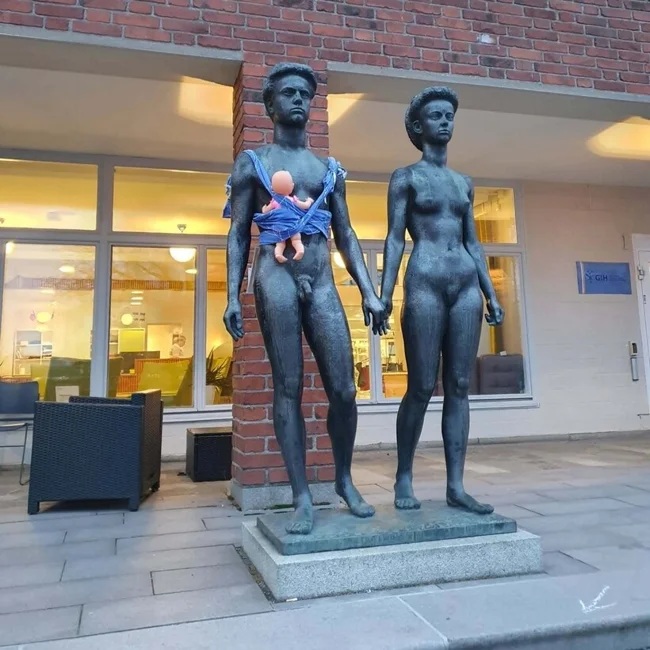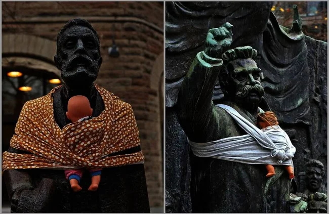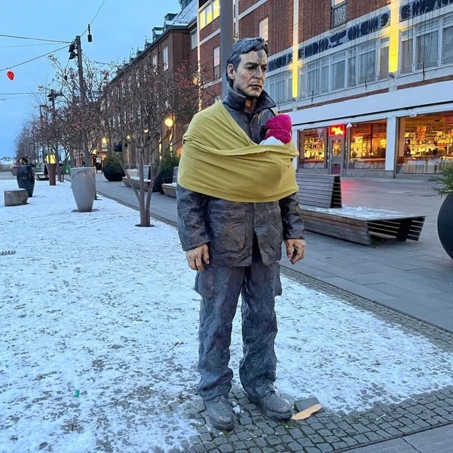 Slings and baby carriers have appeared near male statues in Sweden (16 photos)