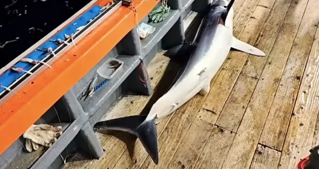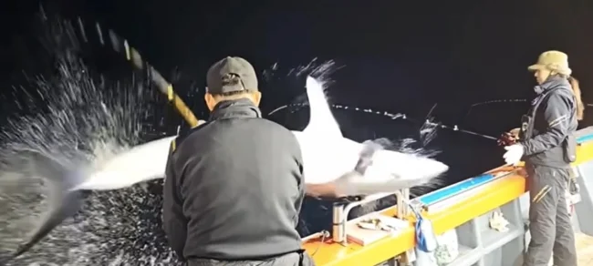 Moments before the incident, the couple were chatting while waiting for a bite. The 150-pound blue shark seemed to have other plans when it suddenly appeared out of the darkness and jumped onto the boat.