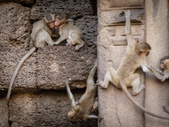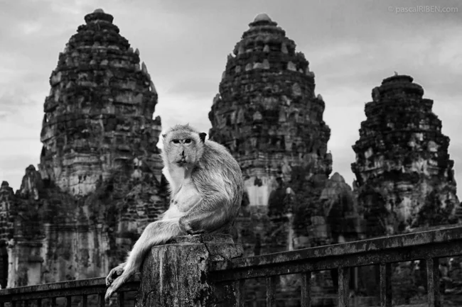 After Jayavarman's death, it was converted into a Shiva temple, and in the 1600s it became Buddhist again. All these changes are reflected in its multi-symbolic architecture. It remains one of the most popular tourist sites in the old town of Lopburi, but not because of its religious significance or cultural history. But because of its inhabitants.