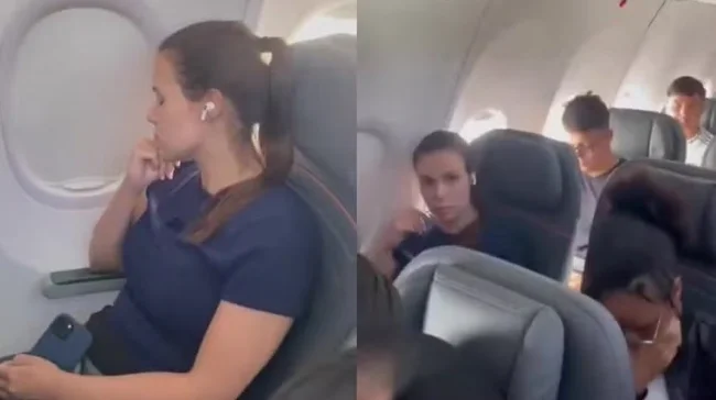 A girl refused to change seats on a plane with a child (2 photos + 1 video)