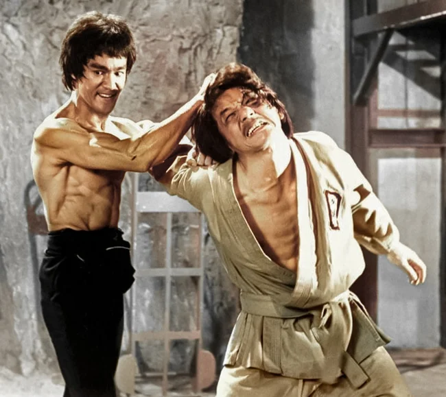 Bruce Lee versus Jackie Chan on the set of the film "Enter the Dragon", 1973.