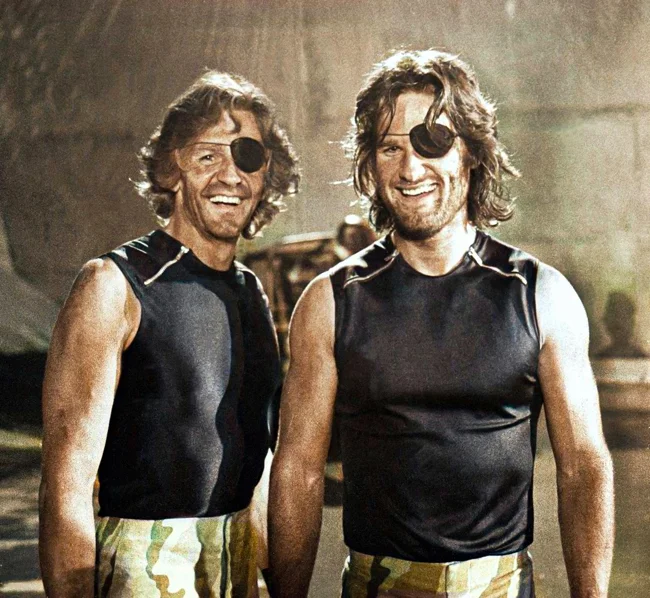 Kurt Russell and his stunt double on the set of Escape from New York. USA, 1980.