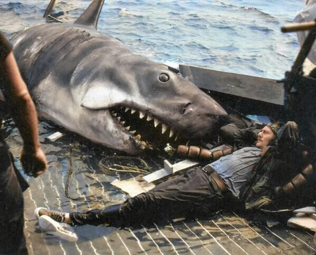 Robert Shaw and the shark "Bruce" decided to take a little break from the filming process.