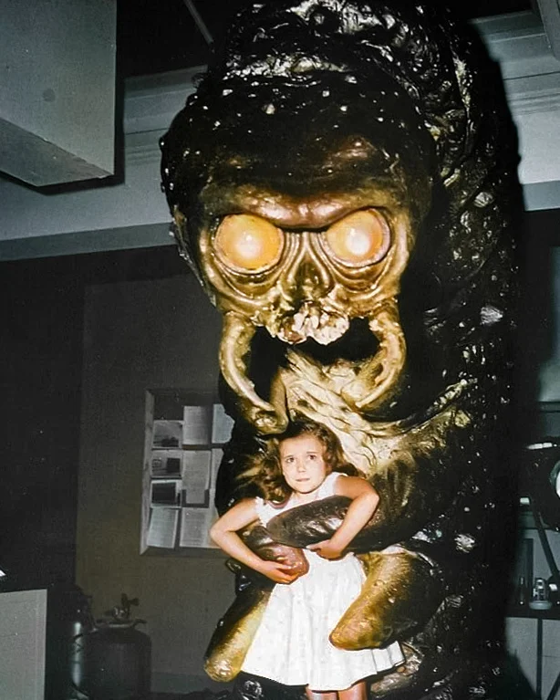 Photo from the set of the film "The Monster that Challenged the World", 1957.