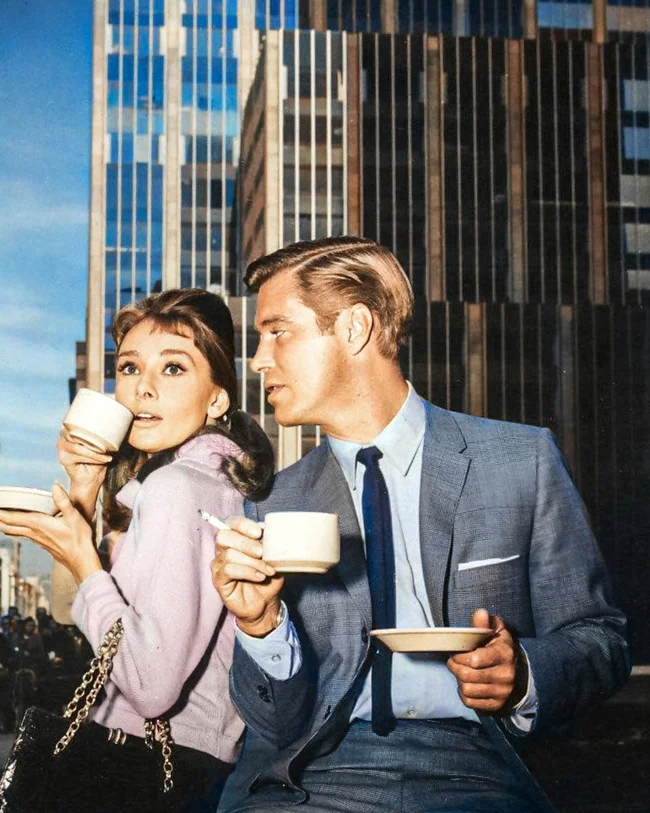 A break on the set of Breakfast at Tiffany's, 1960.