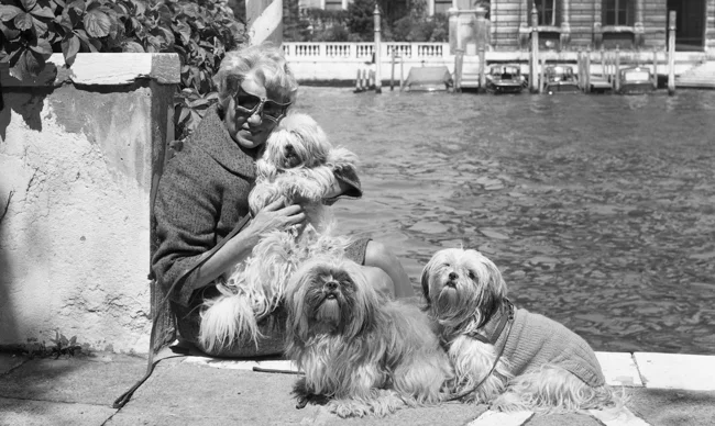 Peggy Guggenheim's ashes are kept in her private palace and museum in Venice, and her companions in death are the same as in life. These are her beloved "little ones", her 14 Lhasa Apsos.