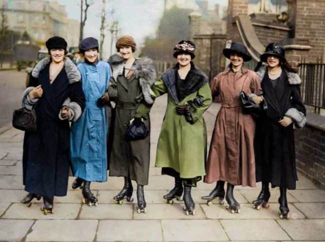 Ladies on roller skates. London, 1926.