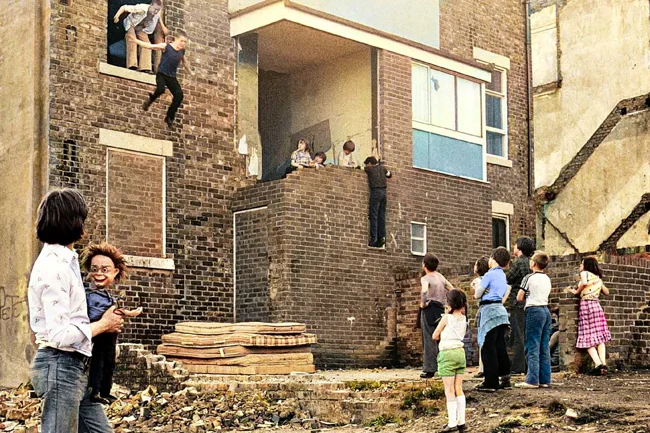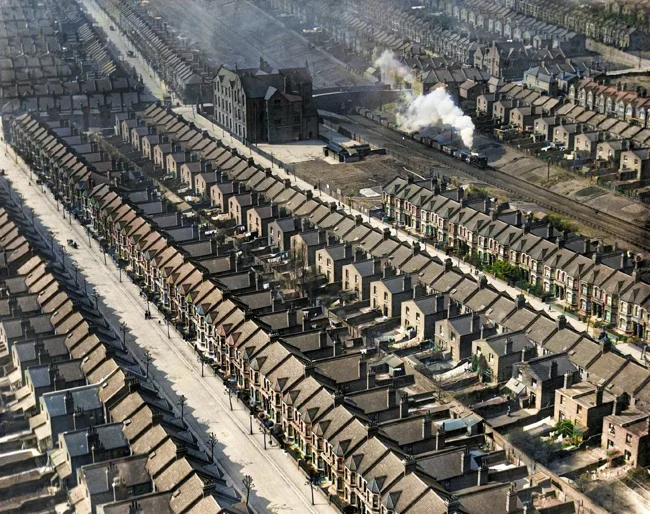 These houses still exist today, with the building in the background being a primary school.