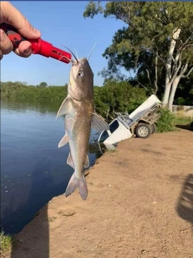 The car was dragged under the water by the fish, no doubt!