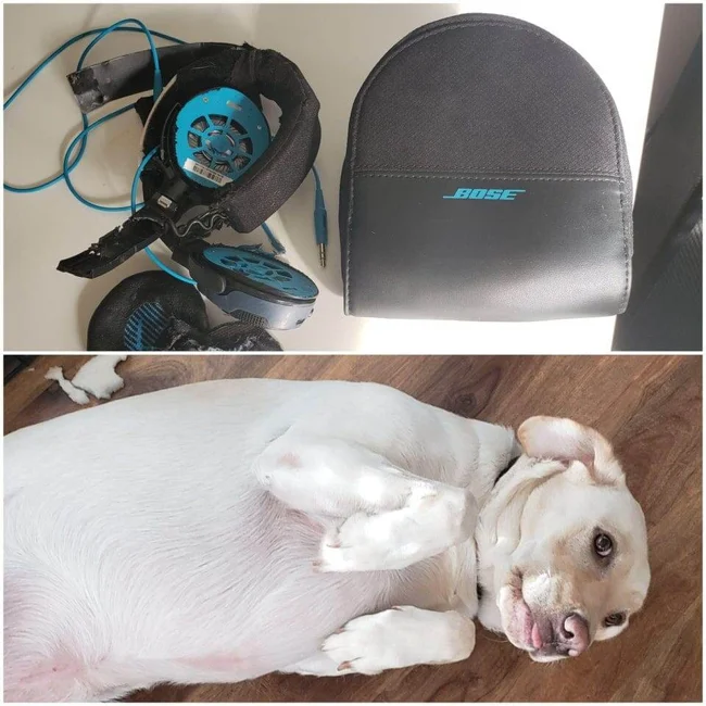 My cat decided to share her lunch with me and used headphones for this