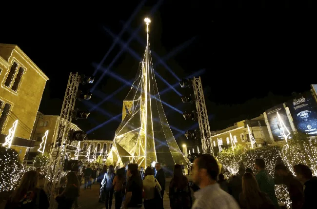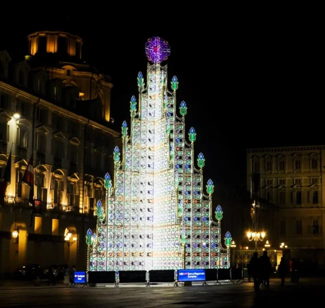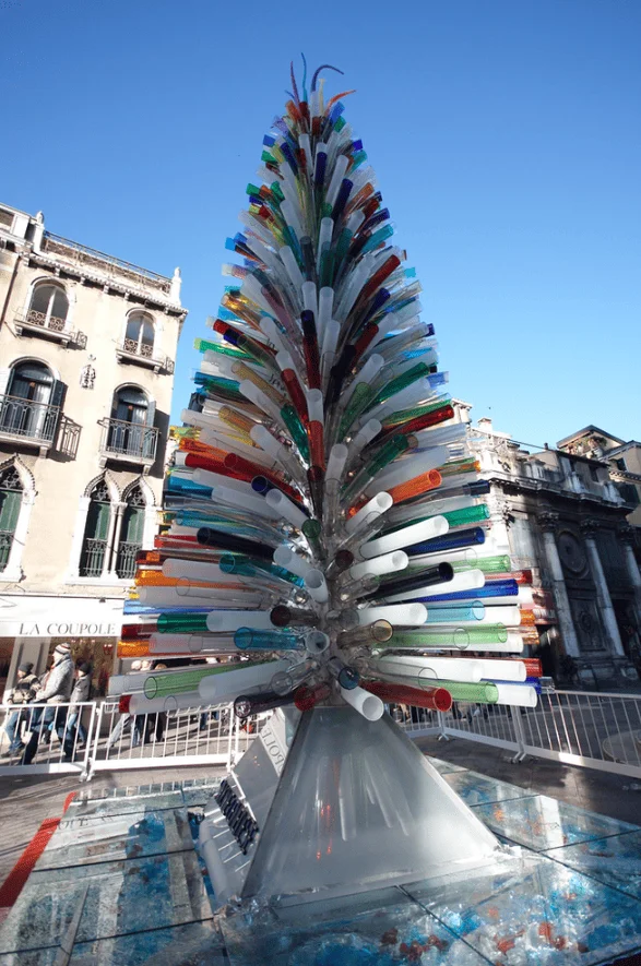 This unusual tree is made from special tubes made of Murano glass. Similar Christmas decorations are popular in many parts of Italy. They can often be seen on the streets during the winter holidays.