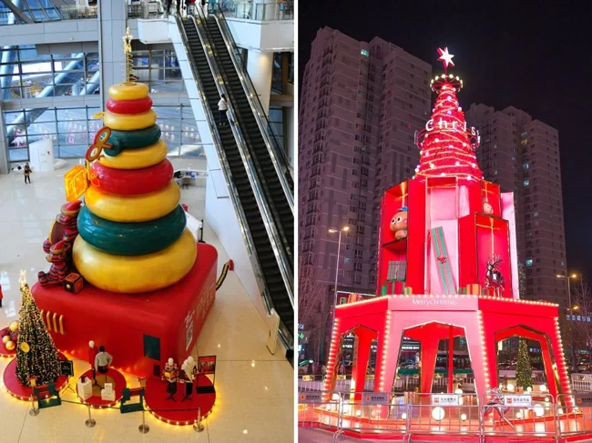 Christmas is not celebrated as actively in China as in European countries, so installing Christmas trees is not such a common occurrence here. However, every year this wonderful tradition is spreading more and more actively, thanks to which you can see extremely interesting and unusual options for decorating Christmas trees on the streets and in shopping centers.