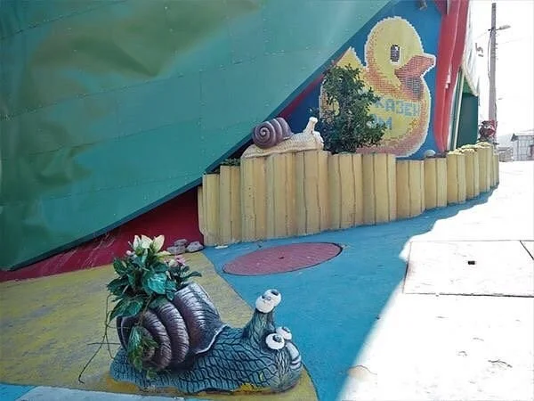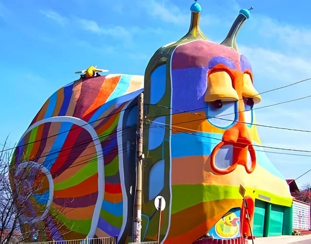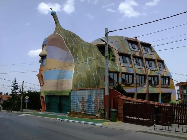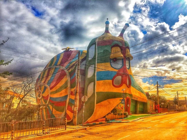 The architect of the snail house, Simeon Simeonov, built this rainbow snail-shaped dwelling in an unusual way. With two horns on its head and curved windows on the sides, it was ingeniously designed so that all the elements of the building seemed part of the decor.
