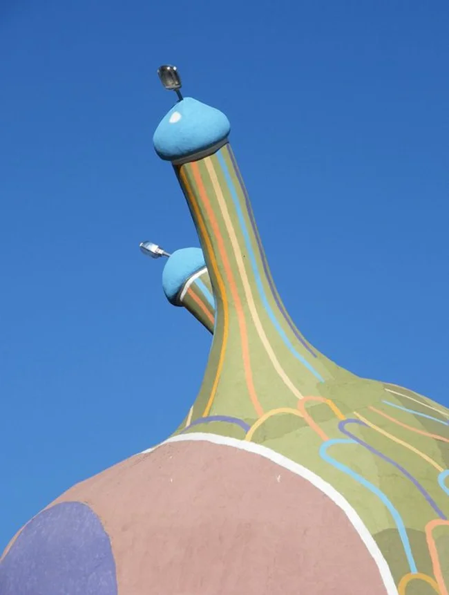 The building is so bizarre that you'd have to drive past it at a snail's pace to get a good look at it.