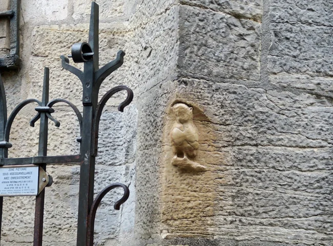 This is the owl of Notre-Dame de Dijon, the symbol of the city and an unofficial mascot. The owl nests about two meters above the ground in an inconspicuous corner of the church, and according to tradition, if you touch it with your left hand and make a wish, it will definitely come true.