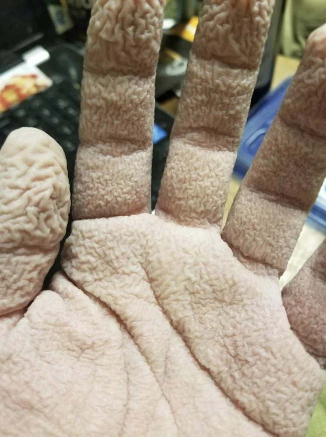 1. After a long stay in water, the skin on the fingers begins to wrinkle