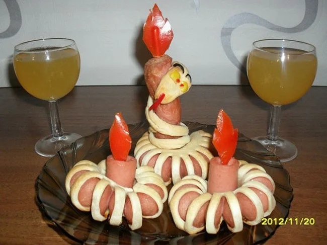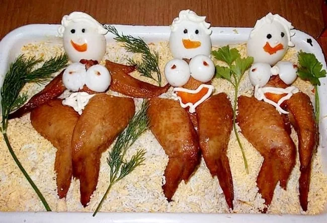 But the usual, albeit tasty, dishes get boring. And people try to add some spice to them through decoration. How does it work? In different ways. Some themed New Year's delights look stylish, others funny, others strange. However, these are just decorations, which are good because they can be eaten and forgotten.