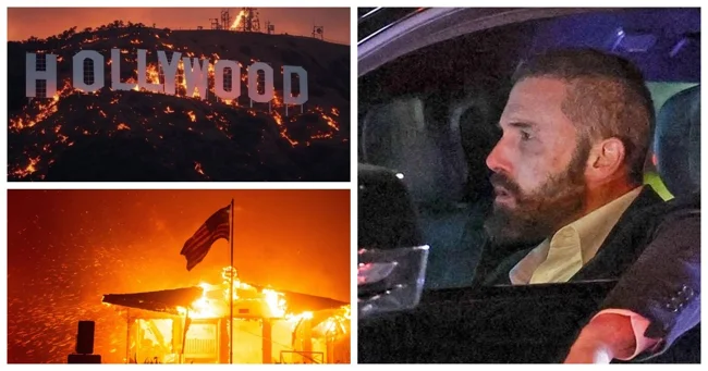 Photos of a sad Ben Affleck watching his house burn are circulating on public pages.