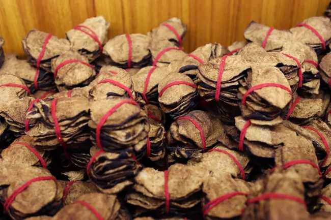Mandarin peels are dried in a special way for three years. And the best mandarins are grown only in the city of Xinhui.