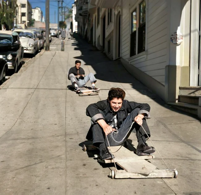 Parking lot on a hill. San Francisco, 1940s-1950s.