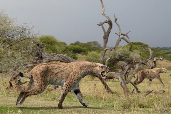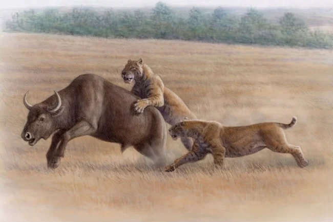 These features not only gave them a slightly "hyena-like" appearance, but also turned them into more resilient animals. And coupled with developed lungs, cats turned into the most resilient felines on the planet. Apparently, packs of homotheres pursued small mammoths until they were exhausted. Wolves use the same tactics when they drive elk and deer to the point of complete loss of fighting ability!