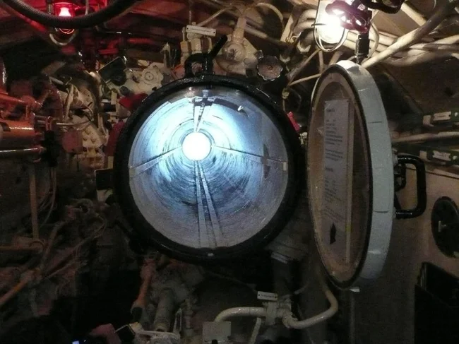Torpedo tube on a submarine of the XXI series