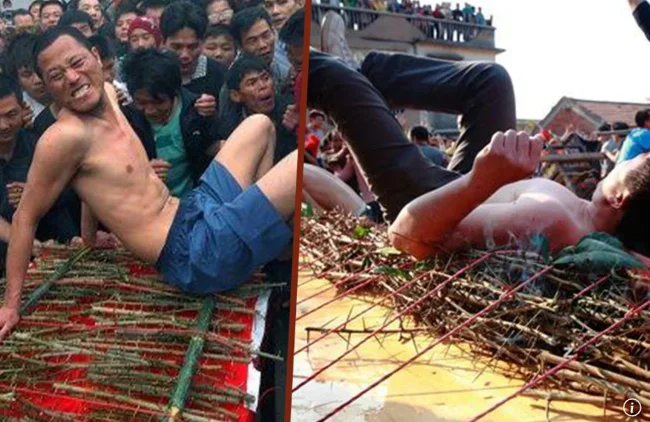 A prickly bed for a Chinese man: the most brutal festival in the country (5 photos + 1 video)