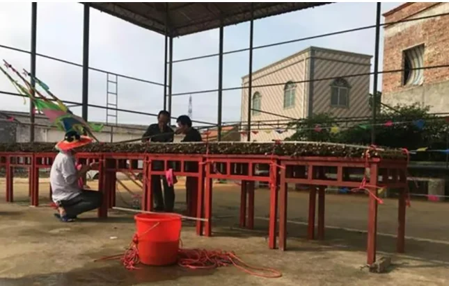 First, all the locals prepare thorny tree branches, tie them together to form a bed and fix it on the "tables of the eight immortals." This is a type of traditional Chinese square dining table.