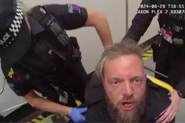 "As the man was being aggressive and would not leave, the officer grabbed him by the scruff of the neck while his partner held the accused by the arms from behind. As they were trying to get him into the wheelchair, Howarth said, 'I'm going to bite you, f******.' He was trying to bite PC Ben Morton on the arm. He fought back and kicked PC Ecob in the face. Fortunately, he was not seriously injured as the accused was only wearing socks. However, the blow caused temporary pain to his mouth and teeth. The officer then punched him in the stomach to stop him from attacking further."